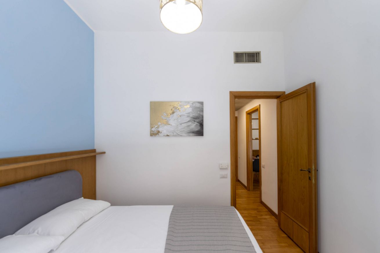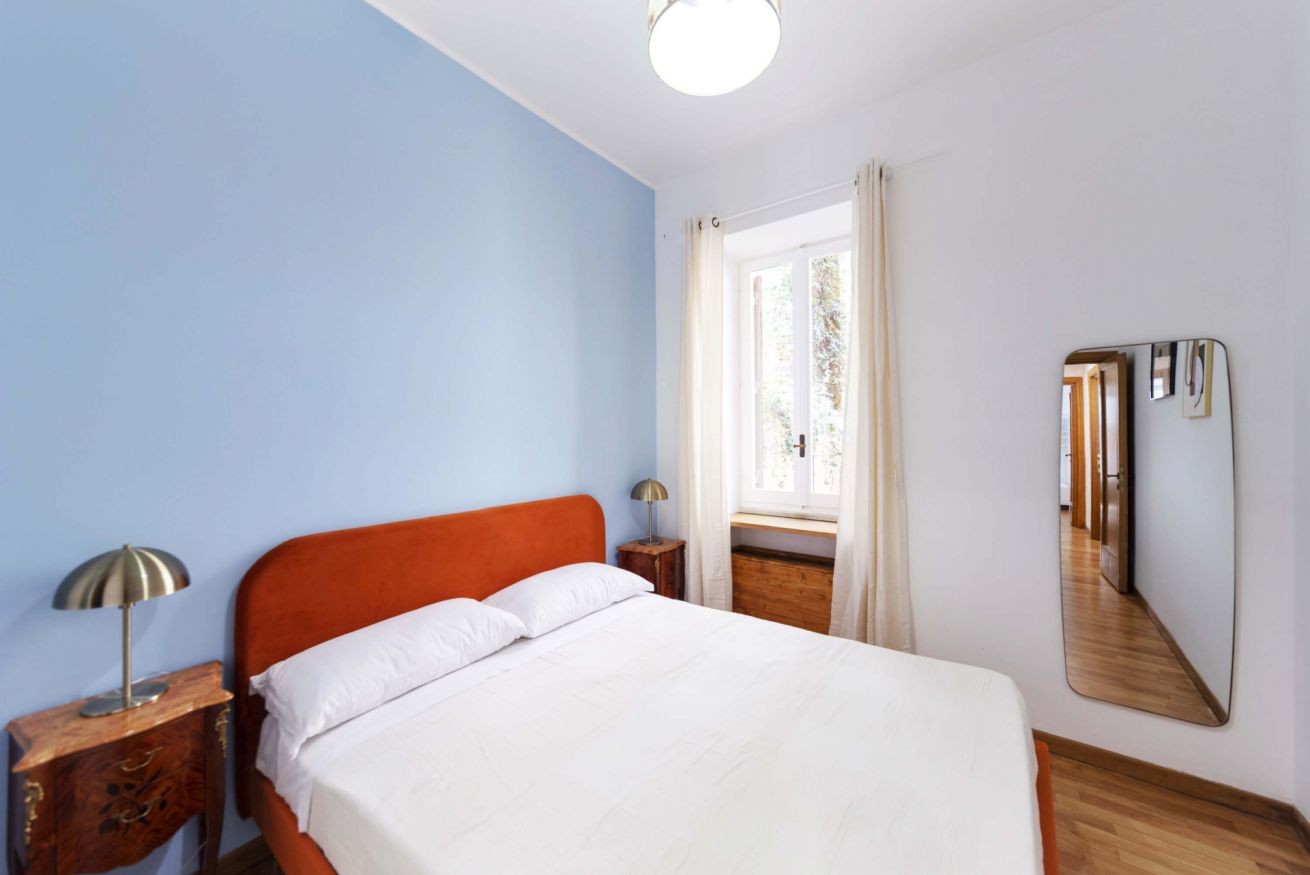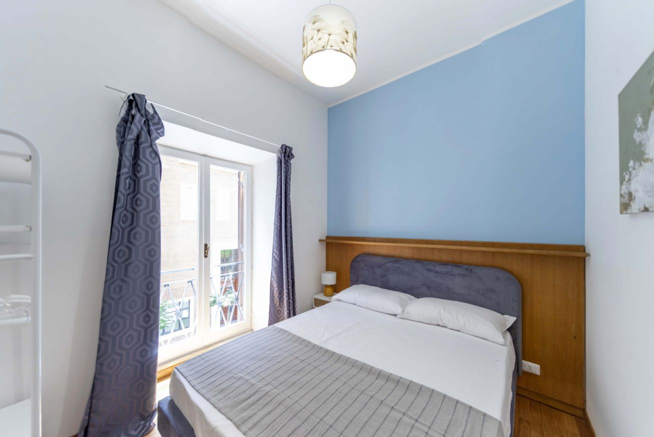 The two bedrooms boast queen-size beds with cozy mattresses, promising a restful night’s sleep after exploring the wonders of Rome.